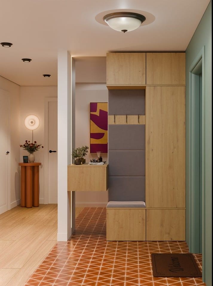 - Tapicerowane siedzisko z zamykaną dolną szafką na buty