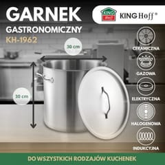 Garnek gastronomiczny KINGHoff o pojemności 21 l to idealne rozwiązanie do kuchni profesjonalnych i domowych, gdzie liczy się niezawodność i komfort użytkowania. Wykonany ze stali nierdzewnej, z dnem kapsułowym i dobrze dopasowaną pokrywką, pozwala gotować sprawnie i bezpiecznie.