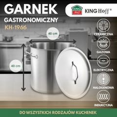 Garnek gastronomiczny KINGHoff o pojemności 50 l to idealny wybór do profesjonalnych kuchni, w których liczy się wydajność, trwałość i komfort pracy. Dzięki dużej pojemności i solidnej konstrukcji ze stali nierdzewnej doskonale sprawdza się przy gotowaniu na dużą skalę.
