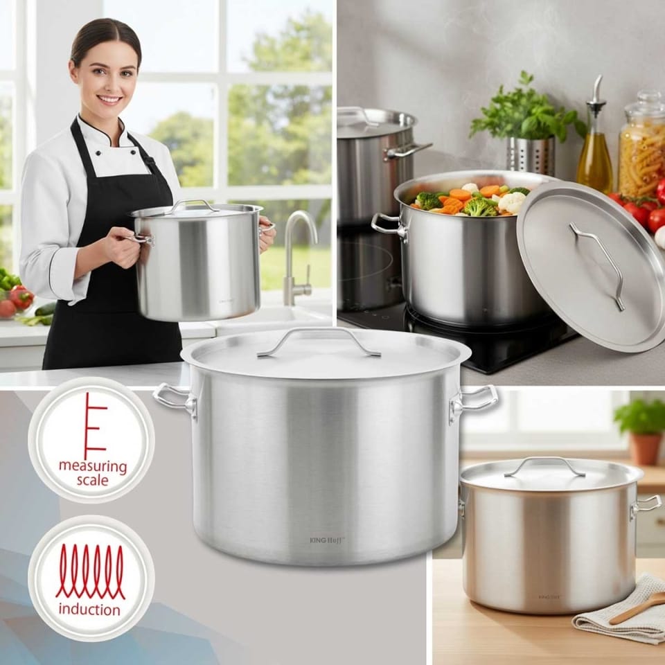 Garnek gastronomiczny KINGHoff o bardzo dużej pojemności 27 litrów to solidne i funkcjonalne naczynie kuchenne zaprojektowane z myślą o przygotowywaniu dużych ilości potraw. Wykonany z wysokiej jakości stali nierdzewnej, zapewnia trwałość, odporność na korozję oraz komfort użytkowania zarówno w kuchni domowej, jak i profesjonalnej gastronomii.
