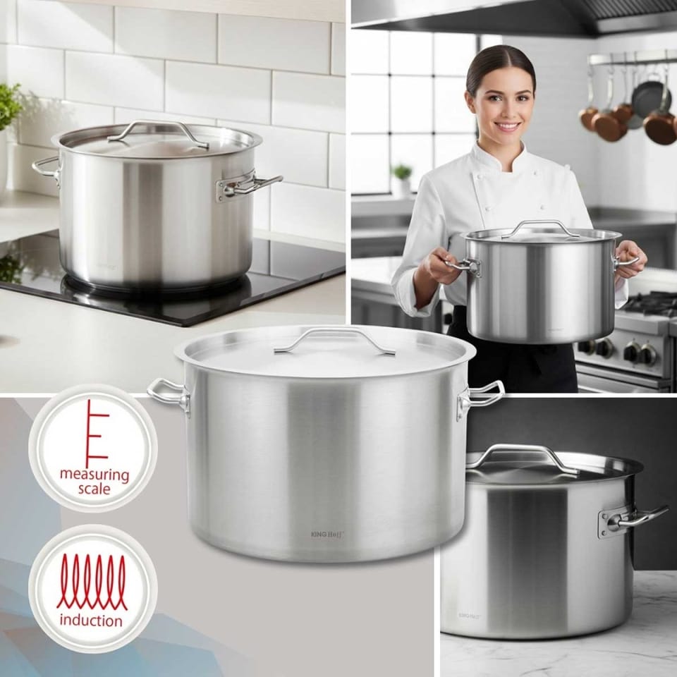 Garnek gastronomiczny KINGHoff o pojemności 32 litrów to bardzo pojemne i wytrzymałe naczynie kuchenne zaprojektowane do przygotowywania dużych ilości potraw. Wykonany z wysokiej jakości stali nierdzewnej, gwarantuje trwałość, odporność na korozję oraz wygodę użytkowania zarówno w kuchni domowej, jak i profesjonalnej gastronomii.