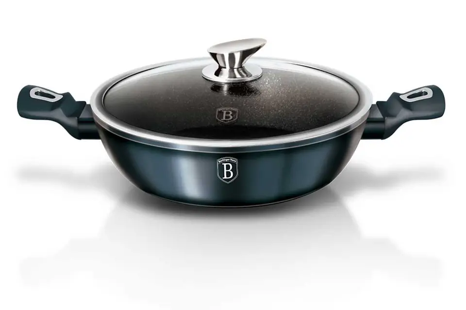 Garnki i akcesoria z serii METALLIC firmy BERLINGER HAUS wykonane są z wysokiej klasy kutego aluminium pokrytego wewnątrz potrójną powłoką granitową (marble) o bardzo wysokim współczynniku twardości. Powłoka zewnętrzna występuje w kilku wersjach kolorystycznych o charakterystycznym metalicznym połysku. Te atrakcyjne i modne naczynia wyposażone są standardowo w uchwyty typu SOFT TOUCH (silikon handle). Przystosowane do wszystkich rodzajów kuchenek: gazowa, elektryczna, ceramiczna, halogenowa, indukcyjna. System TURBO INDUCTION (bardzo szybko nagrzewają się) pozwala zaoszczędzić nawet 35% energii.