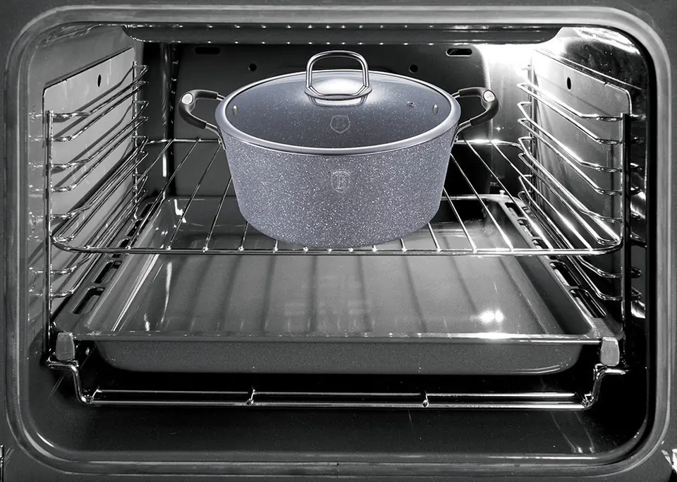 Wytrzymałe naczynia z prasowanego aluminium umożliwiają przygotowywanie potraw bez przywierania i z małą ilością tłuszczu.Potrójna warstwa marmurowa sprawia, że patelnie są niezwykle odporne na zarysowania. Można w nich przygotować pyszne i zdrowe potrawy, które nie utracą soczystości i walorów odżywczych. Nadają się do wszystkich rodzajów kuchenek: gazowych, elektrycznych, ceramicznych, halogenowych i indukcyjnych.