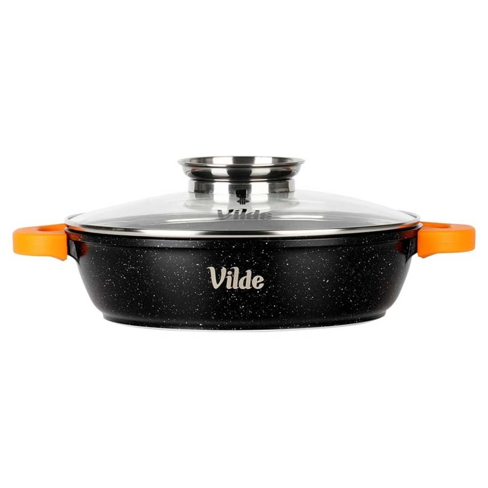 Głęboka patelnia z pokrywką z dozownikiem oraz silikonowymi uchwytami to funkcjonalne naczynie do smażenia, duszenia, pieczenia i przygotowywania sycących, aromatycznych potraw. Jest solidna, wygodna w użytkowaniu i doskonale sprawdzi się w każdej kuchni. Oryginalny produkt marki Vilde z linii Terruna Aroma. Wyprodukowano zgodnie z europejskimi standardami.