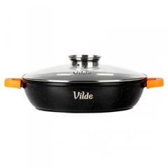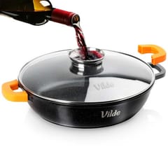 Głęboka patelnia z pokrywką z dozownikiem oraz silikonowymi uchwytami to funkcjonalne naczynie do smażenia, duszenia, pieczenia i przygotowywania sycących, aromatycznych potraw. Jest solidna, wygodna w użytkowaniu i doskonale sprawdzi się w każdej kuchni. Oryginalny produkt marki Vilde z linii Terruna Aroma. Wyprodukowano zgodnie z europejskimi standardami.