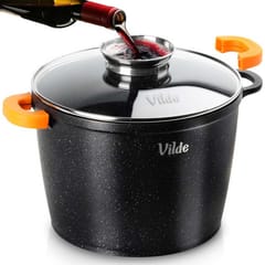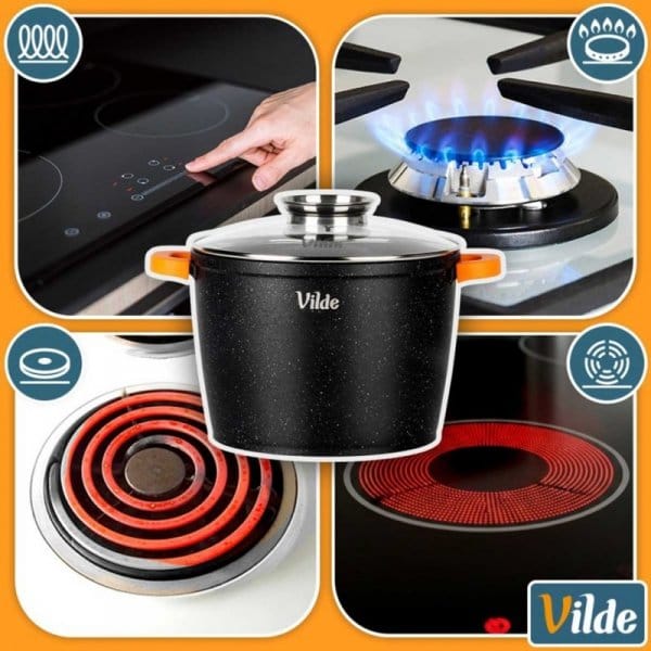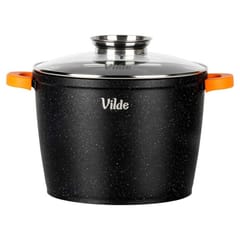 Duży garnek z pokrywką z dozownikiem oraz silikonowymi uchwytami, idealny do gotowania, pieczenia, duszenia i smażenia potraw. Przygotowane w nim dania są soczyste i aromatyczne. Garnek jest trwały, funkcjonalny i idealny do bezpośredniego serwowania dań na stole. Oryginalny produkt marki Vilde z linii Terruna Aroma. Wyprodukowano zgodnie z europejskimi standardami.