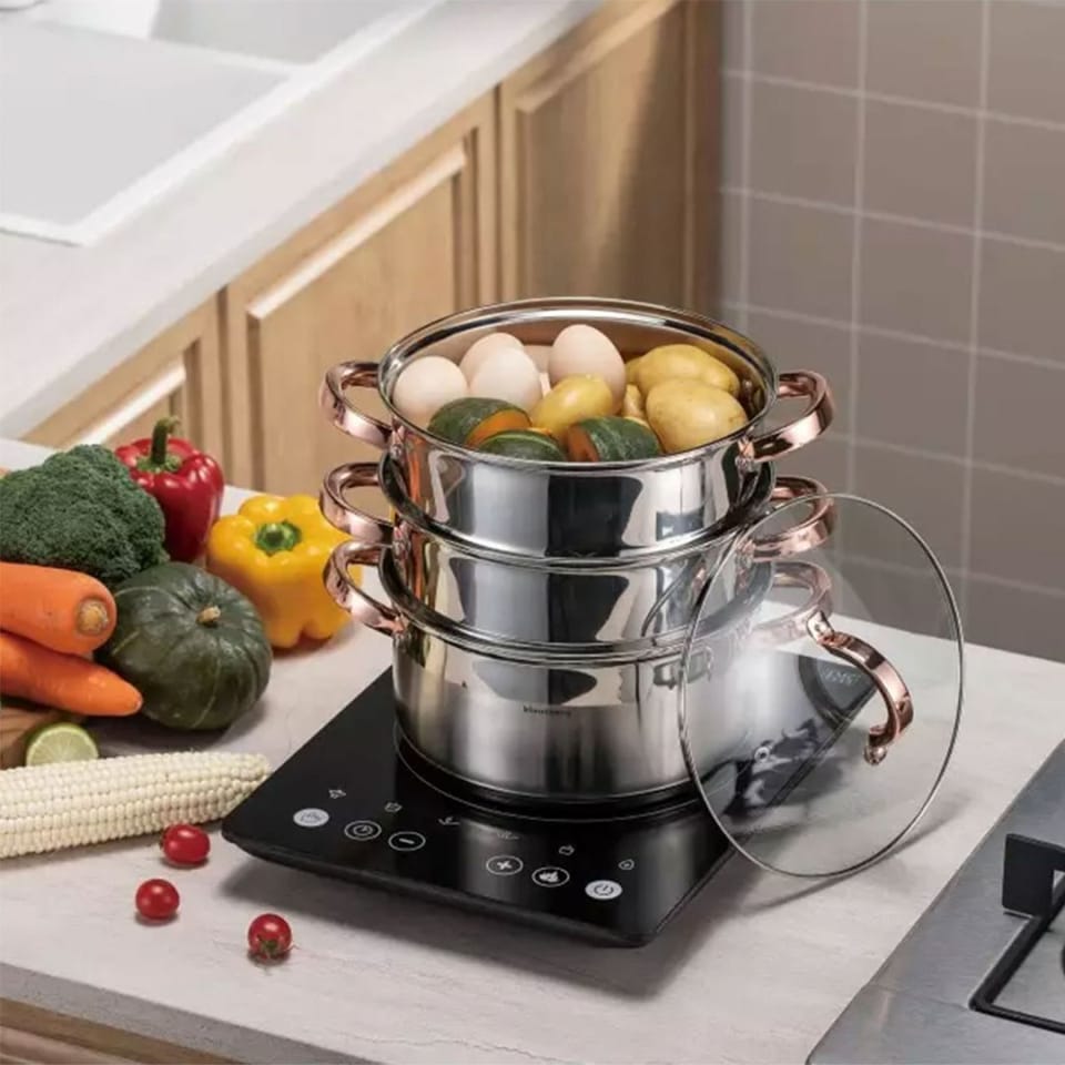 Komplet garnków do gotowania na parze wykonany jest z wysokiej jakości stali nierdzewnej. Wykorzystana stal składa się z najlepszej jakości stopu powszechnie stosowanego w światowej klasy produktach, co gwarantuje jej wysoką odporność na korozję oraz bardzo dobrą wytrzymałość. Zastosowany materiał umożliwia szybkie podgrzanie potraw i przez dłuższy czas utrzymuje ciepło. Produkt przystosowany do gotowania na kuchenkach indukcyjnych, gazowych, elektrycznych, ceramicznych i halogenowych. Można go bezpiecznie myć w zmywarkach.