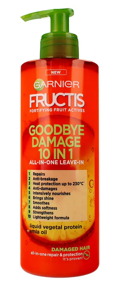 Formuła zawiera ekstrakt z olejku z owoców amli, płynnych protein roślinnych białek z cytryny** i witaminy B3 i B6. Rezultat 10 w 1: Włosy stają się mocniejsze, gładsze, chronione przed temperaturą do 230°C* i uszkodzeniami.