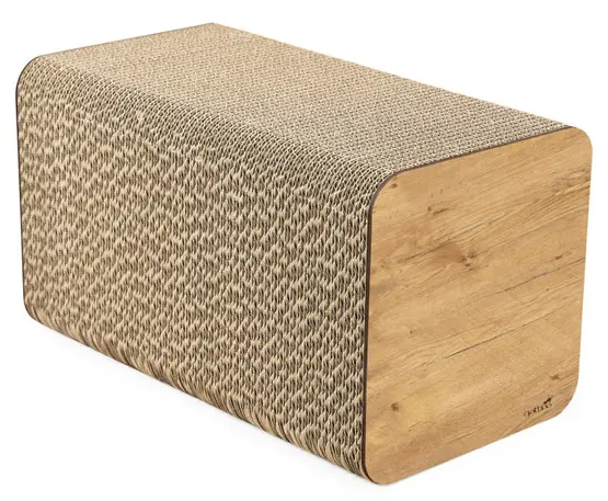 - Wykonany z naturalnej, wytrzymałej tektury falistej, drewnianego lica lub płyty HDF.