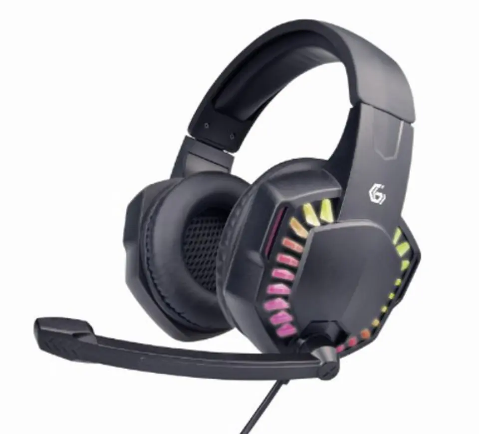 Słuchawki Gembird GHS-06 idealnie sprawdzą się, jako wyposażenie gamingowe dla prawdziwych graczy. Zapewniają wyraźny, wysokiej jakości dźwięk i świetnie dopasują się do głowy każdego gracza. Dodatkowo, posiadają mikrofon do komunikacji z Twoją drużyną podczas rozgrywek multiplayer, czy czatów online. Słuchawki posiadają podświetlenie RGB z efektem tęczy. W zestawie znajduje się adapter 2x 3,5 mm mini-jack.