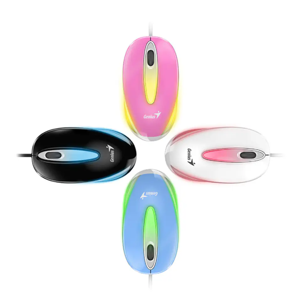 Mysz przewodowa Genius DX-mini LED. Jest mniejsza, jest stylowa z łatwością zmieści się w w kieszonce torby lub plecaka i będzie towarzyszyć w Twojej podróży i pomagać w pracy. Jej elegancka polerowaną powierzchni i podświetleniem LED wyróżnią Cię na tle innych.Dzięki symetrycznemu kształtowi mysz doskonale sprawdzi się u osób prawo i lewo-ręcznych.DX-Mini dostanę jest w cztery kolorach: elegancki czarny, sakura pink, baby blue i czysta biel.Specyfikacja:Kolor: Calm BlackSensor: OptycznyDPI: 1000Liczba przycisków: 3Długość przewodu: około 1,5mKształt: SymetrycznyPodświetlenie LED: TakWymiary myszy: 50,7 x 95 x 34 mmWaga: 65g