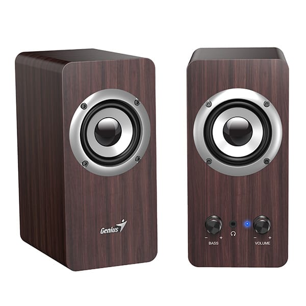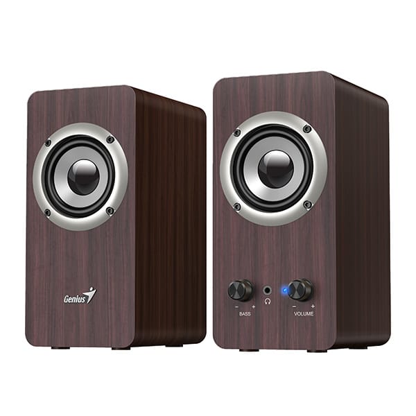 Na obudowie znajduje się wygodna regulacja głośności i basów, dzięki czemu szybko dopasujesz brzmienie do własnych preferencji. Do prywatnego słuchania przyda się wyjście słuchawkowe. Podłączenie odbywa się przez standardowe złącze audio 3,5 mm, więc głośniki współpracują także z tabletem, telefonem lub odtwarzaczem MP3. Wersja w ciemnym drewnie stanowi stylowy dodatek do biurka.