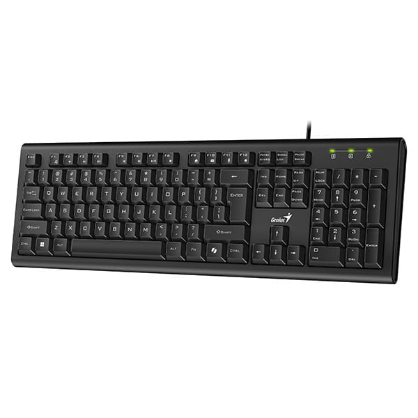 Genius KB-113 to funkcjonalna przewodowa klawiatura zaprojektowana do codziennej pracy. Charakteryzuje się cichymi, niskoprofilowymi klawiszami, które zapewniają wygodne i komfortowe pisanie. Dzięki swojej odporności na zalanie i solidnej konstrukcji, klawiatura jest trwała i niezawodna.