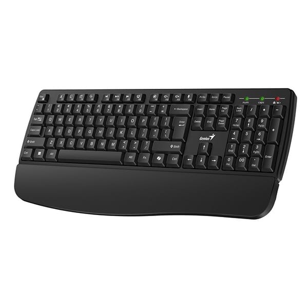 Genius KB-7123 to nowoczesna bezprzewodowa klawiatura stworzona z myślą o codziennej pracy biurowej i domowej. Ergonomiczna konstrukcja z niskoprofilowymi klawiszami oraz zintegrowaną podpórką pod nadgarstki zapewnia wysoki komfort nawet podczas wielogodzinnego pisania. Pełnowymiarowy układ klawiszy z blokiem numerycznym i dodatkowymi funkcjami sprawia, że klawiatura spełni oczekiwania zarówno pracowników biurowych, jak i użytkowników domowych.