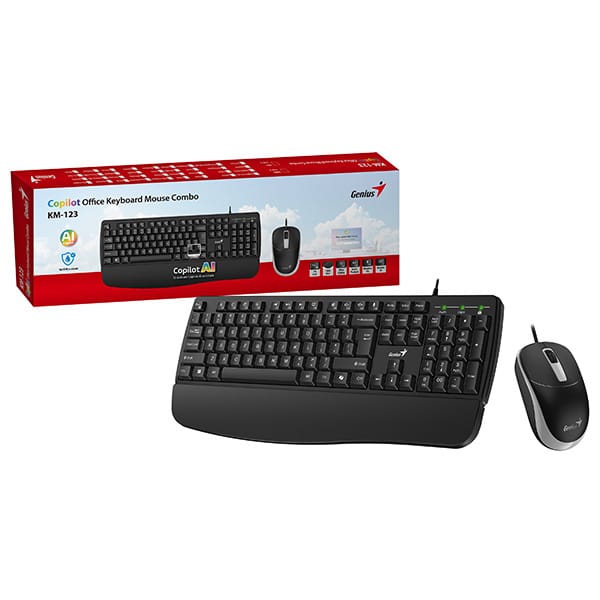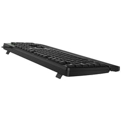 Do dyspozycji są skróty ułatwiające pracę z dokumentami, tabelami oraz sterowanie multimediami. Klawiatura posiada blok numeryczny, w tym specjalny przycisk 00 do szybszego wprowadzania liczb. Konstrukcja odporna na zalanie pomaga chronić klawiaturę w razie przypadkowego rozlania płynu. Mysz optyczna o rozdzielczości 1200 DPI zapewnia precyzyjne sterowanie podczas pracy w aplikacjach i przeglądania internetu. Przewodowe podłączenie USB plug and play działa od razu po podłączeniu, bez instalowania sterowników.