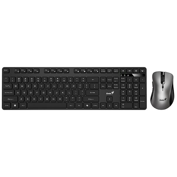 Klawiatura z zestawu Genius KM-8216S została wyposażona w niski profil klawiszy, co zapewnia ciche i komfortowe pisanie. Dzięki zastosowaniu membranowej technologii, klawiatura oferuje odpowiednią responsywność i przyjemne wrażenia podczas użytkowania.Funkcjonalność wzbogacają dedykowane klawisze multimedialne, które pozwalają na szybki dostęp do podstawowych funkcji, takich jak regulacja głośności czy obsługa odtwarzacza multimedialnego. Dodatkowo, klawiatura posiada przycisk umożliwiający uruchomienie Microsoft Copilot – zaawansowanego asystenta AI w systemie Windows 11, co ułatwia wykonywanie bardziej skomplikowanych zadań.Dzięki wskaźnikowi niskiego poziomu baterii, użytkownik zawsze będzie wiedział, kiedy wymaga ona wymiany. Zestaw działa w trybie "plug & play", co oznacza, że nie wymaga instalacji dodatkowego oprogramowania – wystarczy podłączyć dołączony adapter USB i rozpocząć pracę.