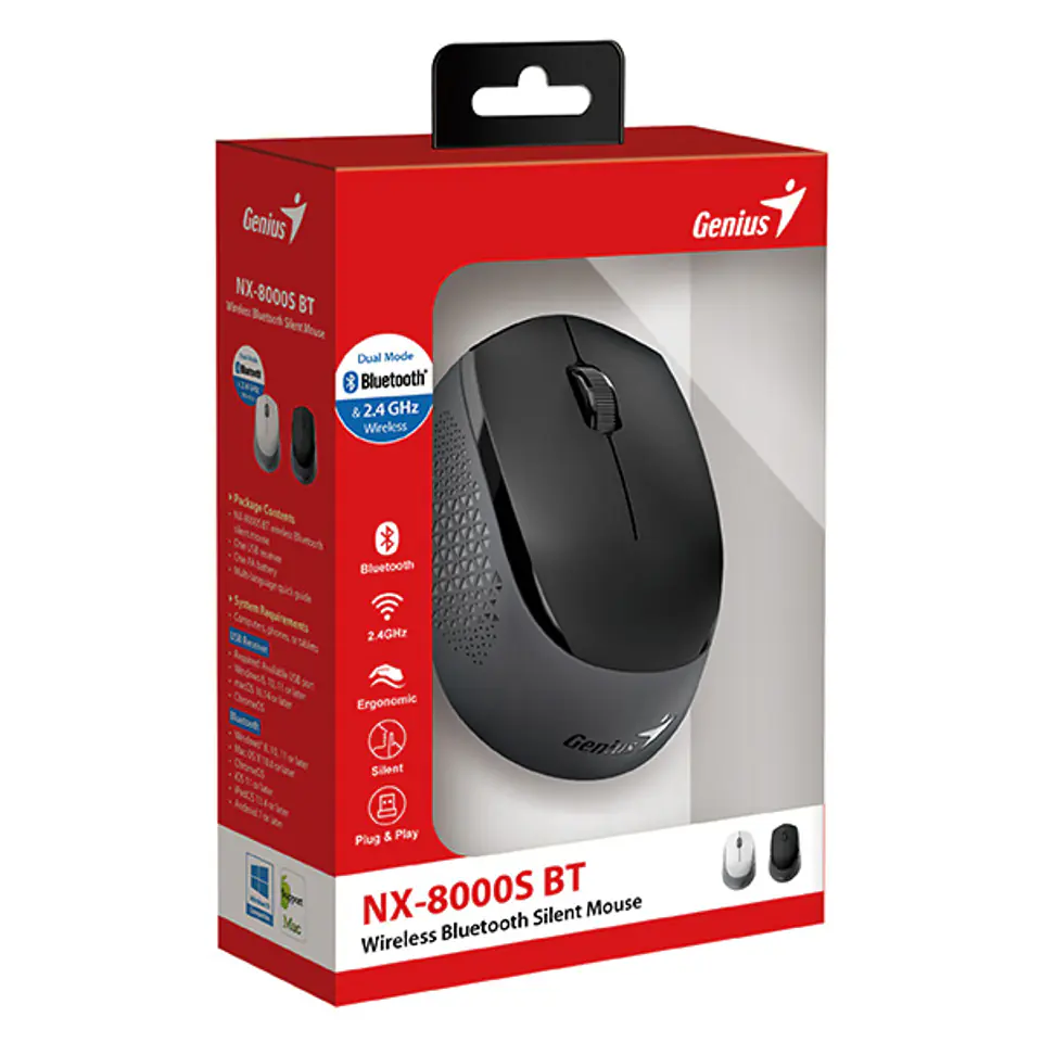 Genius NX-8000S BT Mysz bezprzewodowa, czarno-szara, 1200DPI