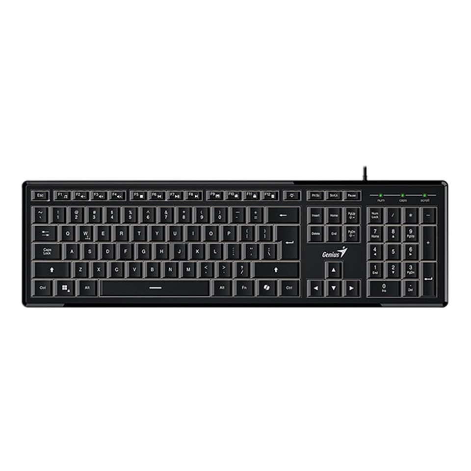 Genius SlimStar 820 to klasyczna klawiatura przewodowa, która oferuje komfort i funkcjonalność podczas codziennej pracy. Dzięki ergonomicznemu designowi, regulowanemu podświetleniu LED i dedykowanemu przyciskowi AI, jest doskonałym wyborem dla osób szukających niezawodnej klawiatury do pracy biurowej i domowej.