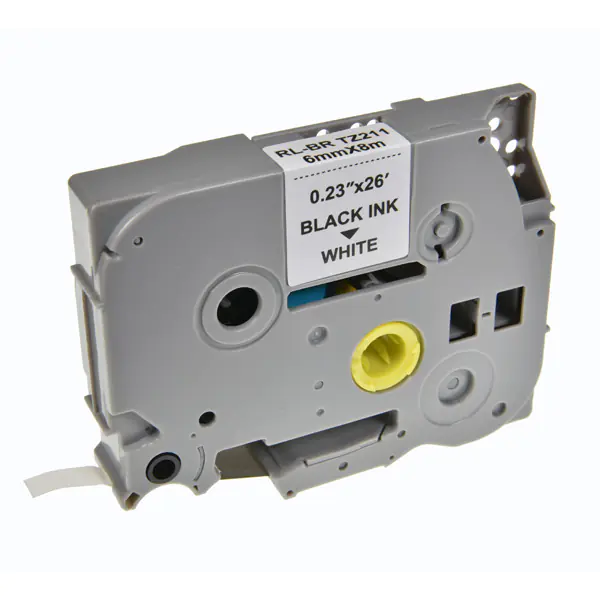 Kompatybilna taśma Neutral pack RL-BR-TZ211P-BK/WT odpowiednik Brother TZ-211. G&G jest to najwyższej jakości materiał alternatywny wyprodukowany z niezwykłą starannością by gwarantować najlepszą jakość Twoich wydruków. Kaseta jest fabrycznie nowa, nieregenerowana. Taśma jest dedykowana do urządzeń: Brother PT1100SB, PT1100SBVP, PT1100ST, PT1120, PT113, PT11600, PT1170, PT1170S, PT1180, PT1190, PT11Q, PT1200, PT1230PC, PT1280, PT1280SR, PT1280VP, PT1280AF, PT1290, ST1150, ST1150DX, PT7100, PTD200, PT18R, PT300, PT-300B, PT310, PT-310B, PT320, PT340, ST1150, ST1150DX, PT1300, PT1700, PT1750, PT1760, PT1800, PT1810, PT1830, PT1830C, PT1830SC, PT1830VP, PT1880, PT1900, PT1910, PT1950, PT1960, PT2030, PT2030AD, PT2030VP, PT2100, PT2110, ST5, PT330, PT350, PT520, PT540, PT580C, PT1400, PT1500PC, PT1600, PT1650, PT2200, PT2210, PT2300, PT2310, PT2400, PT2410, PT2430PC, PT2500PC, PT2600, PT2610, PT2700, PT2710, PT2730, PT2730VP, PT7500, PT7600, PT530, PT550, PT3600, PT9200PC, PT9200DX, PT9400, PT9500PC, PT9600, PT9700PC, PT9800PCN. Szerokość taśmy wynosi 9mm