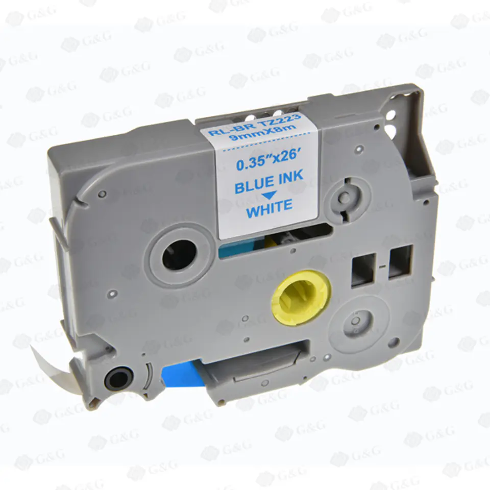 G&G kompatybilny taśma do drukarek etykiet, dla Brother, TZE-223, niebieski druk/biały podkład, laminowane, 8m, 9mm