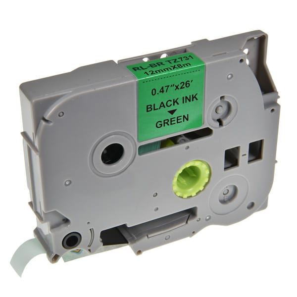 G&G kompatybilny taśma do drukarek etykiet, dla Brother, TZE-731, czarny druk/zielony podkład, laminowane, 8m, 12mm