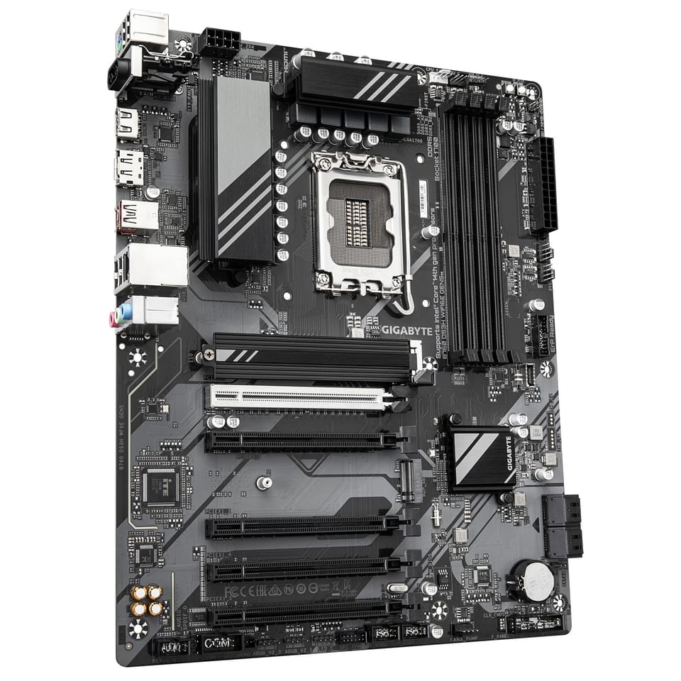 Płyta główna GIGABYTE B760 stanowi zaawansowaną platformę dla procesorów Intel Core 12., 13. i 14. generacji, oferując pełne wsparcie dla technologii PCIe 5.0. Dzięki podwojonej przepustowości w porównaniu do standardu PCIe 4.0 (32 GT/s na linii) zapewnia znakomitą wydajność dla najnowszych kart graficznych, dysków SSD oraz akceleratorów AI. Wzmocnione gniazdo PCIe UD Slot ze stali nierdzewnej oraz innowacyjne złącza zasilania UD Power Connector gwarantują stabilność pracy nawet przy najbardziej wymagających konfiguracjach. Hybrydowy zasilacz VRM 8+2+1 faz wraz z rozbudowanym systemem chłodzenia zapewnia optymalne temperatury komponentów, a cztery sloty DDR5 z obsługą podkręcania do 7600 MHz otwierają nowe możliwości wydajnościowe.