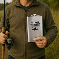Idealny towarzysz wędkarskich wypraw Niech każdy połów będzie legendarny - nie tylko ze względu na złowioną rybę! Ta gigantyczna piersiówka o pojemności aż 1750 ml to gadżet, który od razu przyciąga uwagę. Imponujący rozmiar, metaliczny połysk i nadruk „Rozmiar ma znaczenie” sprawiają, że trudno przejść obok niej obojętnie. To doskonały prezent dla każdego wędkarza z dystansem i poczuciem humoru. Sprawdzi się jako oryginalny upominek na urodziny, imieniny lub po prostu - bez okazji. Dla tych, którzy wiedzą, że w życiu, jak i na rybach, rozmiar naprawdę ma znaczenie.