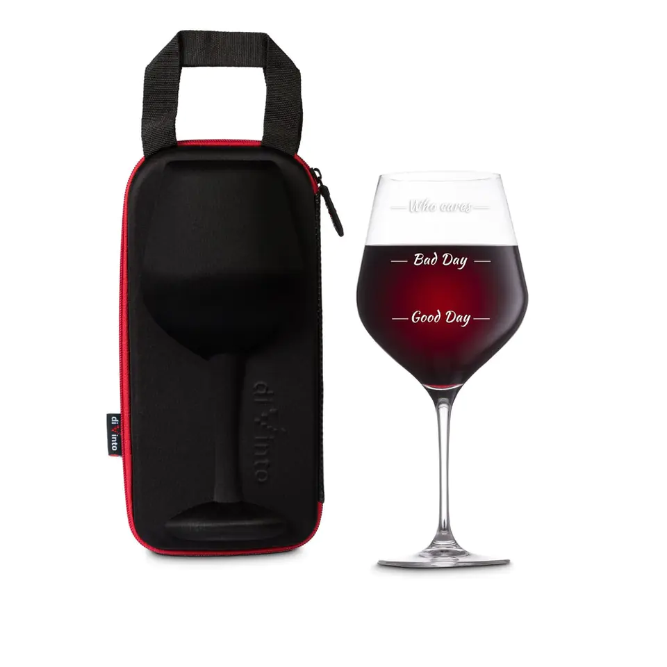 Poradzi sobie z każdym humorem Ciężki dzień? Dobry dzień? Wino nie dyskryminuje, a podane w Gigantycznym Kieliszku diVinto - Who cares poradzi sobie z każdym humorem. A czym różni się dobry dzień od złego? Ilością wina wypitego na jego koniec! To dlatego na Gigantycznym Kieliszku diVinto - Who cares zostały umieszczone trzy poziomy napełnienia, dzięki którym można nabrać trochę dystansu do rzeczywistości i z poczuciem humoru dać znać innym, w jakim jest się nastroju. A jeśli okaże się, że od rana do wieczora wszystko jest jednym wielkim nieporozumieniem, duża pojemność kieliszka pozwala wlać do niego od razu całą butelkę wina. Who Cares! Jutro też jest dzień, a dziś przynajmniej nie będziemy martwić się o dolewki. ;) Praktyczne i eleganckie etui Gigantyczny Kieliszek diVinto - Who cares zrobi odpowiednie wrażenie na obdarowanej nim osobie, ponieważ zapakowany został w praktyczne i eleganckie etui. Całość nie tylko świetnie wygląda, ale też pozwala bezpiecznie przewozić kieliszek z miejsca na miejsce w nienaruszonym stanie. Gadżet na lepsze i gorsze dni To świetny prezent dla przyjaciółki, siostry, córki czy koleżanki świętującej urodziny. Sprawdzi się podczas wieczoru panieńskiego, z okazji dostania się na studia, przeprowadzki, wyczekiwanego awansu w pracy czy osiemnastych urodzin. Nadaje się zarówno dla kogoś, kto miał gorsze chwile, jak i kogoś, kto ma dobry powód do świętowania. To idealny sposób, by z poczuciem humoru pokazać komuś, jak dobrze go rozumiesz.