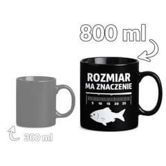 Dla miłośników wędkarstwa Czarny kubek wędkarski o pojemności 800 ml to wyjątkowy gadżet dla każdego, kto lubi spędzać czas nad wodą. Solidne wykonanie i zabawny nadruk sprawiają, że kubek wyróżnia się na tle zwykłych naczyń, a jego ogromna pojemność pozwala cieszyć się dużą porcją kawy, herbaty czy innego ulubionego napoju.To idealny wybór dla wędkarzy, rybaków i wszystkich pasjonatów wędkarstwa, którzy cenią praktyczne, a jednocześnie zabawne akcesoria. Sprawdzi się jako prezent na urodziny, imieniny, Dzień Ojca, Święta czy po prostu jako upominek „na ryby”.