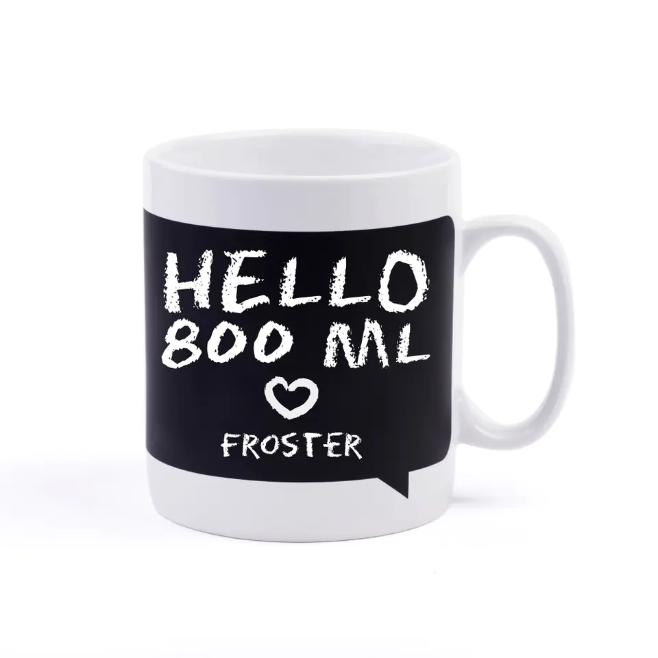 - Do zestawu dołączono: kreda. Gigantyczny gadżet, robiący gigantyczne wrażenie. Nadruk wokół całego produktu. Materiał: ceramika. Wymiary: 12,5 cm (wysokość), 800 ml (pojemność). Nadaje się do kontaktu z żywnością. Produkt bezpieczny