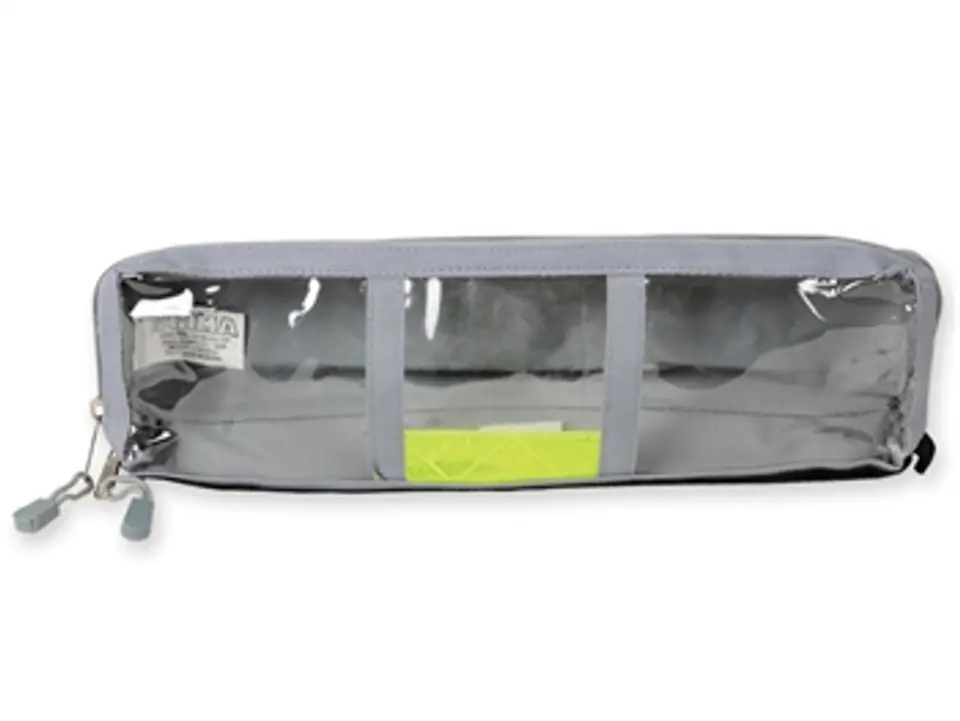 KOSMETYCZKA MEDYCZNA MODEL E6 - SZARY Podłużna kosmetyczka w kształcie prostokąta. Z przodu ścianka kosmetyczki wykonana z przezroczystego materiału. Z tyłu rzep, możliwość przymocowania do szelek plecaka, torby lub do odpowiedniego wnętrz torby ratunkowej. Całość zapinana na ekspres. Rozmiar: 38 x 10 x 5 cmW opakowaniu: 1 szt.Minimalne zamówienie: 1