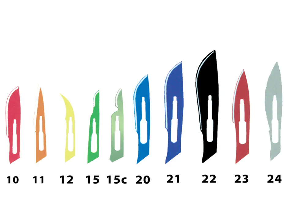 Ostrze chirurgiczne węglowe z końcówką bezpieczeństwa. Każde ostrze jest oznaczone i indywidualnie pakowane w folię aluminiową. Wielkość ostrza jest wyraźnie oznaczone na odwrocie folii oraz poprzez kolor naklejki na pudełkach zbiorczych.Ostrza chronione papierem VCI.W opakowniu 100 szt.