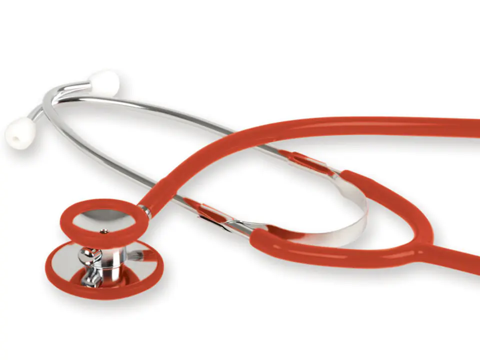 Podstawowy stetoskop internistyczny Głowica stetoskopu cynkowo-aluminiowa chromowana. Wszystkie elementy niemetalowe dobrane kolorystycznie do koloru przewodu. Zewnętrzna lira oraz "ciepła" obwódka. Średnica głowicy: -duża membrana Ø 45 mm (dla dorosłych), -mała membrana Ø 35 mm (dzieci), -lejek Ø 30 mm. Dostarczane w kartonowym pudełku.