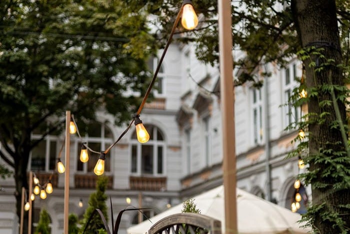 Girlanda solarna 6,5m, 10 żarówek LED, 8 funkcji świecenia, pilot zdalnego sterowania, panel solarny 1.35W, timer, funkcja przyciemniania, wskaźnik naładowania baterii, czujnik zmierzchu, barwa światła 2700K, możliwość dodatkowego ładowania z ładowarki przewodem USB C, bateria 1200mAh, typ 18650, czas pracy do 8h
