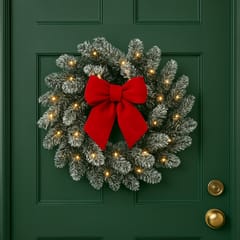 Girlanda wieniec ozdobny na drzwi 50cm choinka ośnieżona z lampkami 50 LED WSN30