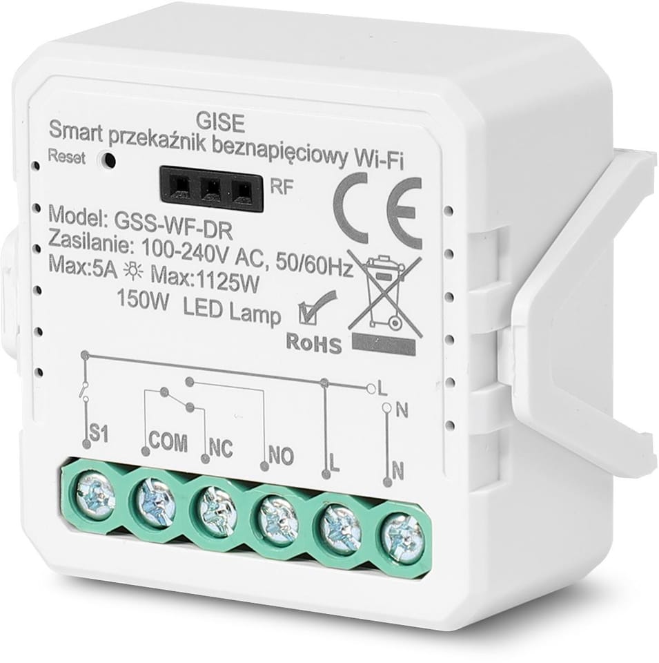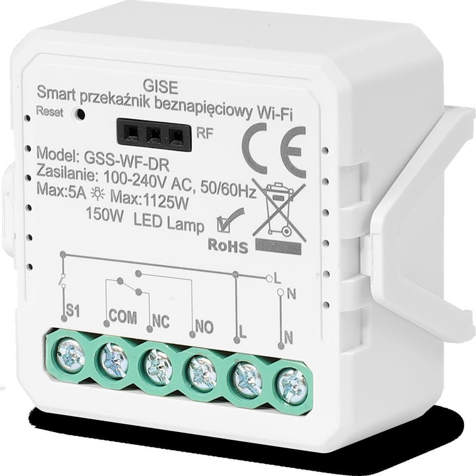 GISE Smart Pojedynczy moduł przekaźnikowy bezpotencjałowy WiFi | Tuya | GSS-WF-DR