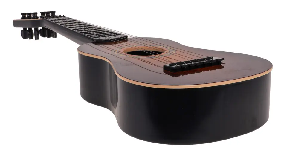 Pięknie wykonana gitara klasyczna w kolorze brązu to propozycja dla małych muzyków od 3-go roku życia. Gitara świetnie imituje prawdziwy instrument, posiada 6 żelaznych strun oraz kołki stroikowe na gryfie, dzięki czemu dźwięk zbliżony jest do brzmienia gitary klasycznej. Zabawka wykonana została z wysokiej jakości tworzywa sztucznego o strukturze drewna.