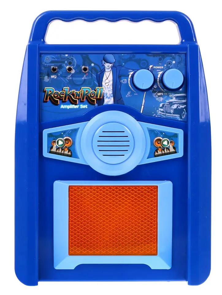 Zabawka wyposażona jest w 6 metalowych strun, 6 tony gitary, 6 melodii, 5 demo i 2 krótkich solówek. Piec umożliwia podpięcie gitary, mp3 oraz mikrofonu. Ponadto posiada 2 pokrętła - regulację głośności mocy natężenia głosu (mikrofon) oraz regulację głośności (gitara). Wykonanie i żywa kolorystyka przyciągną uwagę najbardziej wymagające pociechy. Obecność muzyki w rozwoju dziecka ma zdecydowanie pozytywny wpływ. Talent ujawniony w tak wczesnym okresie ma szansę znacznie się rozwinąć w przyszłości, dlatego też nie można przegapić tego momentu. Gitara zasilana jest 4 bateriami typu AA 4 x 1,5V (brak w zestawie). Piec zasilany jest 3 bateriami typu AA 3 x 1,5V (brak w zestawie).