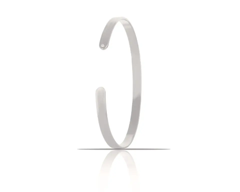 Posrebrzana, prosta, elegancka bransoletka, o kształcie otwartego okręgu z małym kryształkiem Preciosa, umieszczonym na jednym z końców. Bransoletka jest delikatna i subtelna, co czyni ją uniwersalnym dodatkiem, pasującym do różnych strojów zarówno na co dzień, jak i na specjalne okazje.