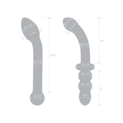 Dzięki temu zestawowi zapewnisz sobie doskonała stymulacją punktu G. Oba gładkie dilda są zakrzywione aby precyzyjnie stymulować ten ważny punkt. W zestawie znajdziesz klasyczne dildo do punktu G, a bulwiasta, zwężająca się końcówka umożliwia płynną penetrację. Dildo ma podwójne zakończenie, jeden koniec jest gładki i ma delikatnie zaznaczoną główkę, a drugi jest żebrowany, świetnie sprawdzi się do intensywnej stymulacji lub jako uchwyt. . Dla urozmaicenia można je podgrzać lub ochłodzić. Oba dilda wykonane są z bezpiecznego i hipoalergicznego szkła borokrzemowego, łatwego w czyszczeniu. Atutem szklanych zabawek jest to, że można używać ich z lubrykantami każdego typu.