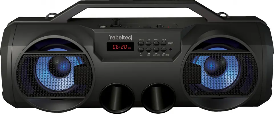 - tryby: bluetooth, radio FM, pen drive, karta microSD, AUX, KARAOKE, TWS