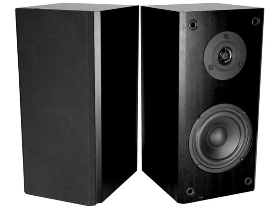 Głośniki stereofoniczne, 2-drożne, 40W RMS, regulacja tonów niskich, wysokich i głośności, drewniane obudowy - kolor czarny.