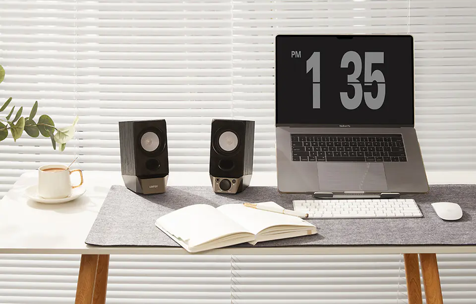 Postaw na udane połączenie wysokiej jakości dźwięku i stylowego designu. Głośniki 2.0 Edifier R19BT zostały wyposażone w 2,75-calowe przetworniki i wyróżniają się mocą 2 W + 2 W. Dzięki temu mogą zapewnić czyste, bogate w szczegóły brzmienie. Połączysz je z wybranym urządzeniem na 3 sposoby - za pomocą kabla USB lub AUX, a także przez Bluetooth 5.3. Dostępne jest również wyjście słuchawkowe.