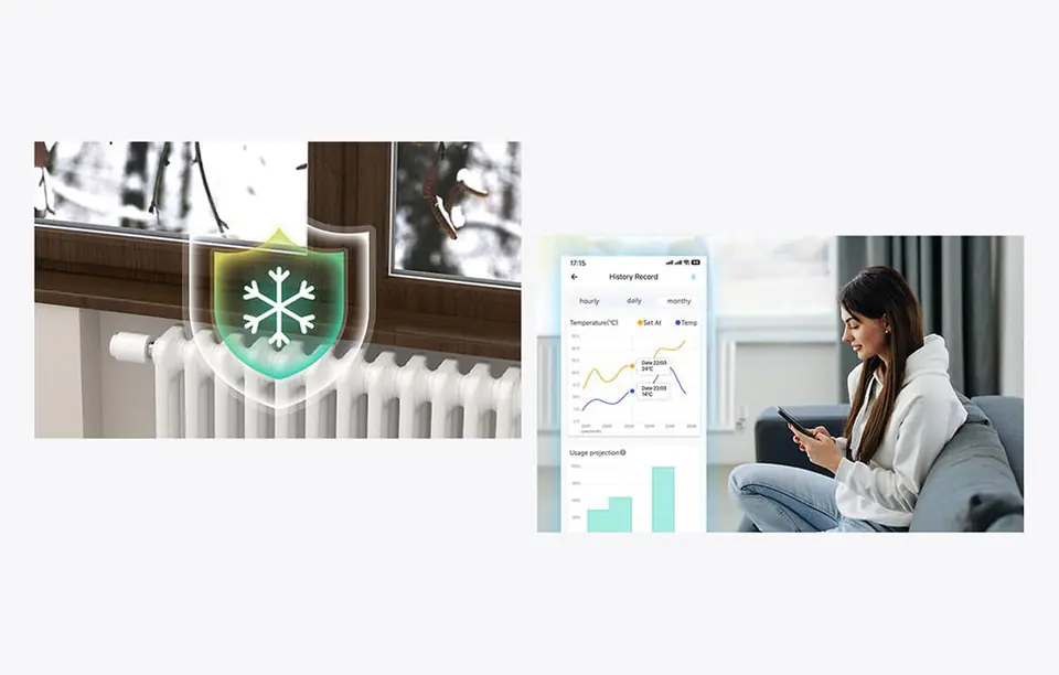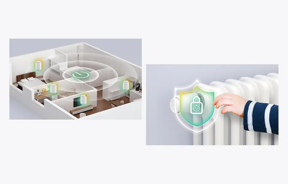 Funkcja Child Lock zapobiega nieautoryzowanym zmianom ustawień przez dzieci. Oprócz tego, głowica oferuje kontrolę głosową oraz dostęp do danych historycznych w aplikacji, co pozwala na dokładną analizę zużycia energii. Smart Scenes umożliwia tworzenie scenariuszy, które automatycznie dostosowują temperaturę do różnych aktywności dnia.