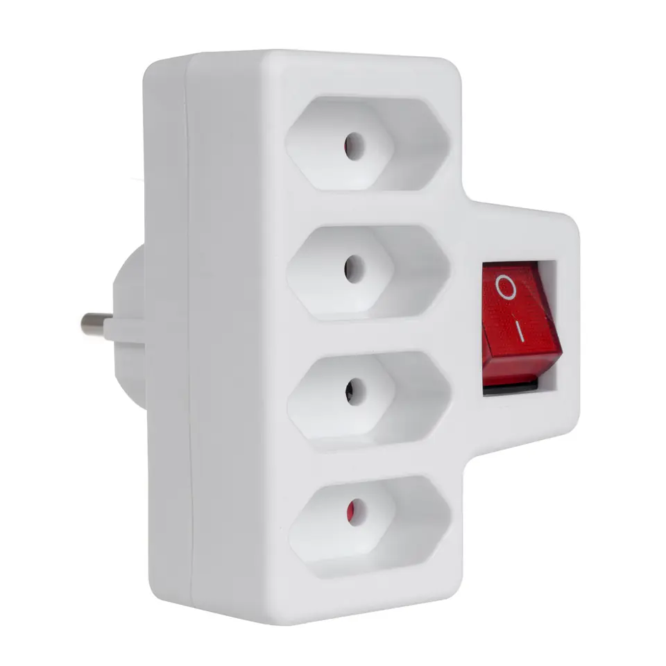 Gniazdko prądowe poczwórne z wyłącznikiem Maclean Energy posiadające wtyk uniwersalny.