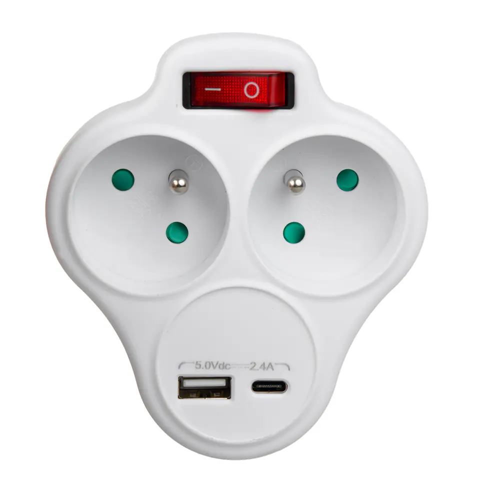 Gniazdko prądowe Maclean, rozgałęźnik z 2 gniazdami i USB A/C 2.4A, typu E, 2x16A, MCE336 E