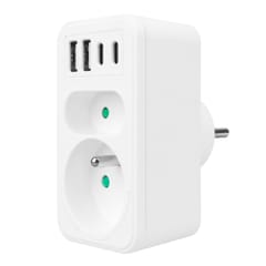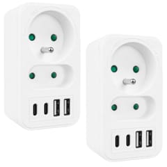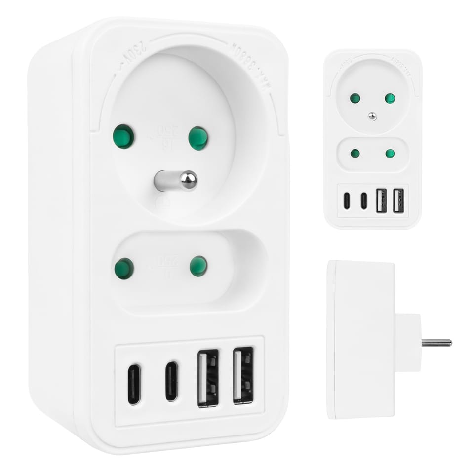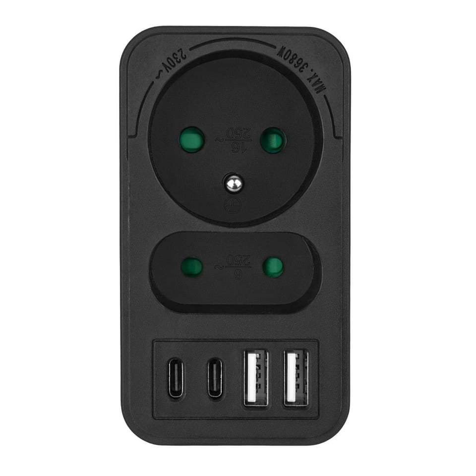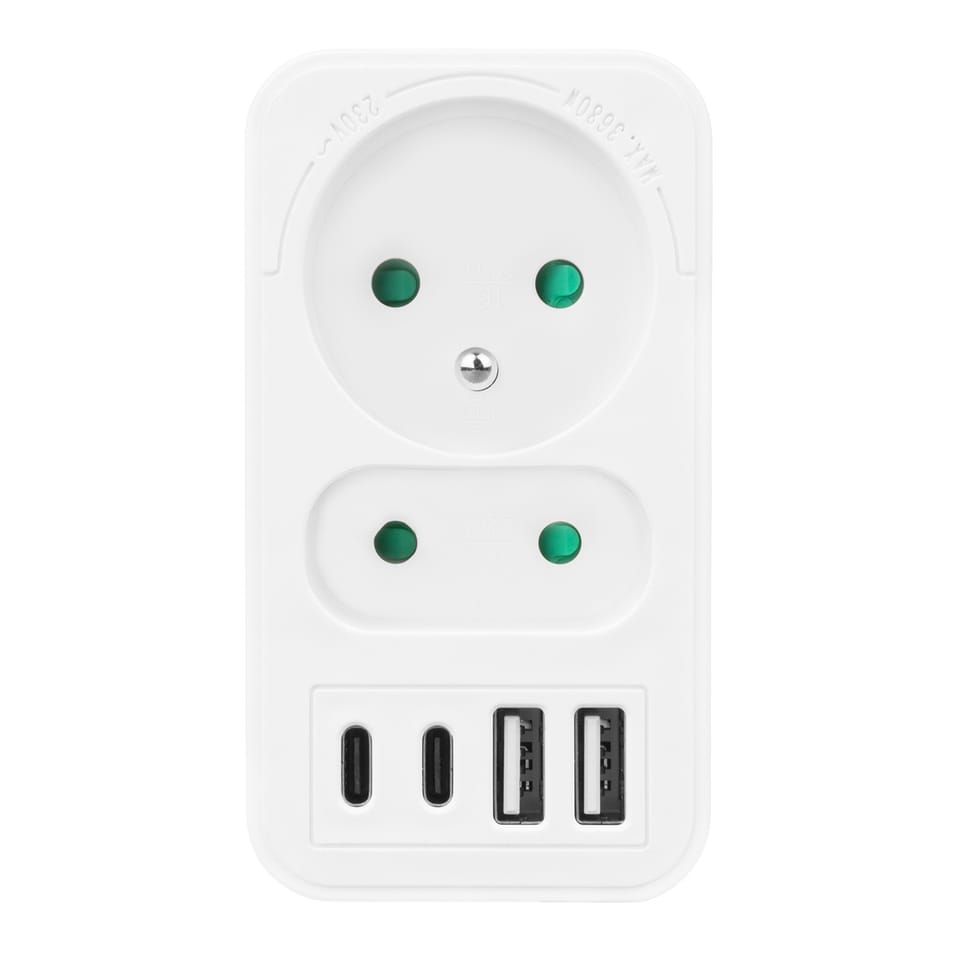Gniazdko prądowe x2 + 4xUSB Maclean, rozgałęźnik z 2 gniazdami, 2xUSB A, 2xUSB C PD 20W, typu F, 1x16A + 1x6A, MCE249 F/W