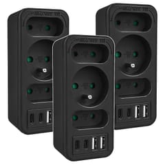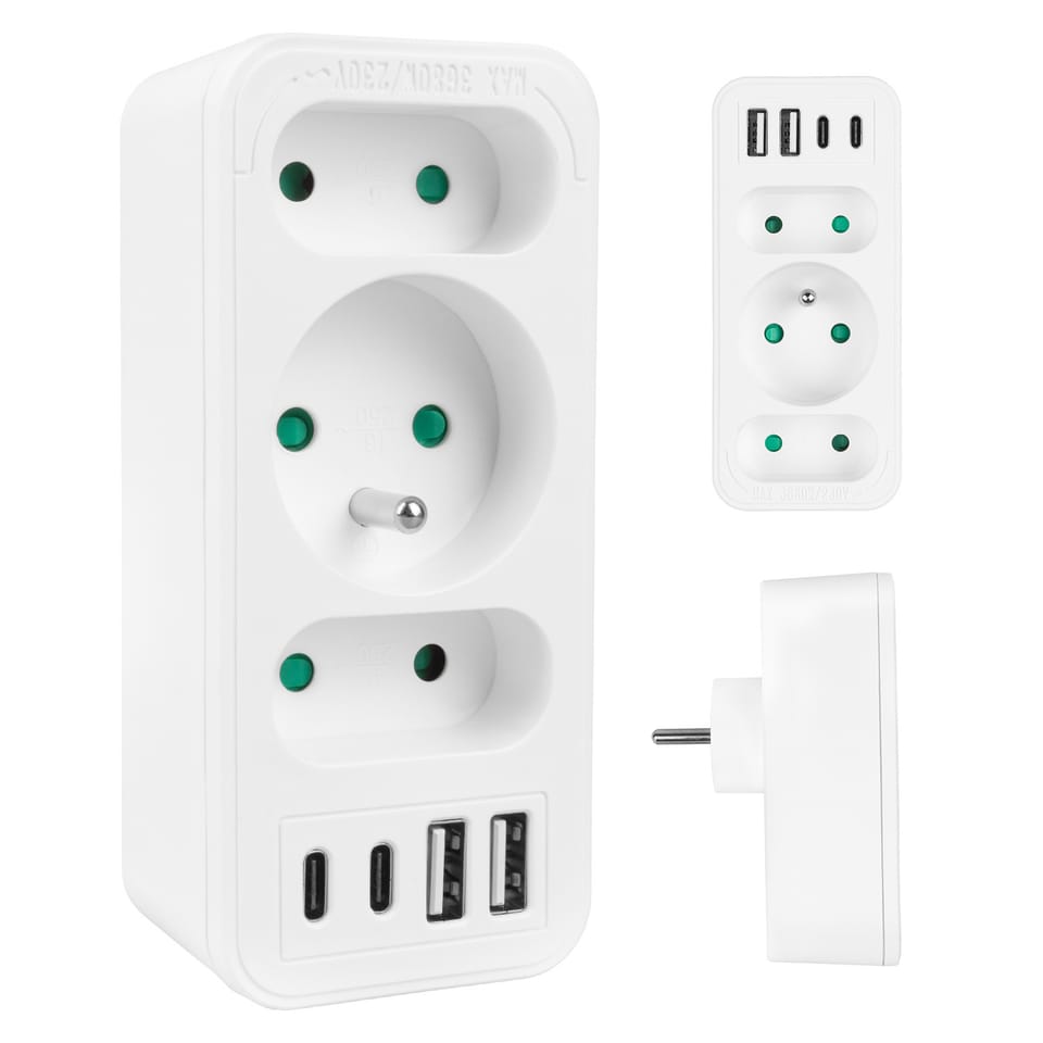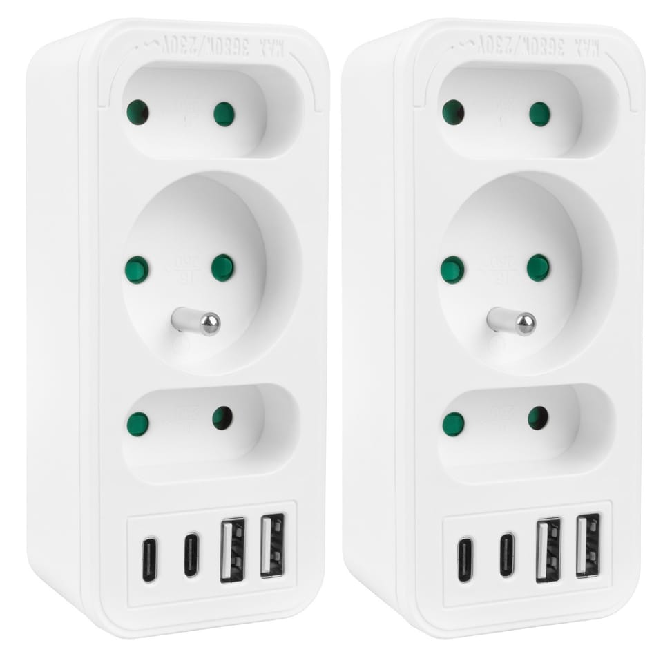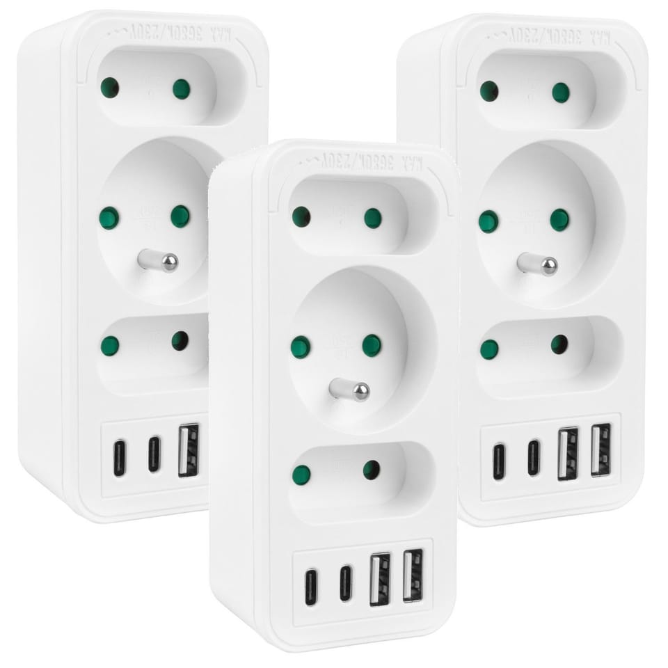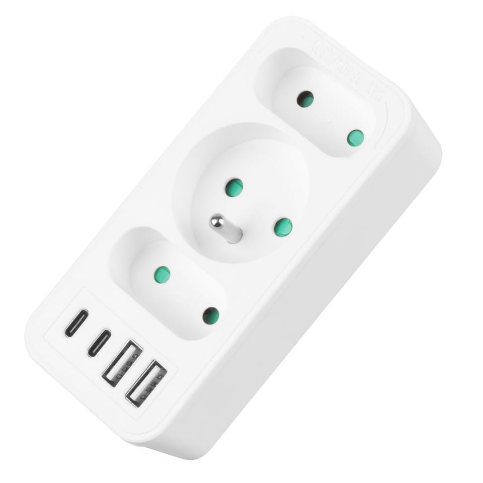 Gniazdko prądowe x3 + 4xUSB Maclean, rozgałęźnik z 3 gniazdami, 2xUSB A, 2xUSB C PD 20W, typu F, 1x16A + 2x6A, MCE248 F/W