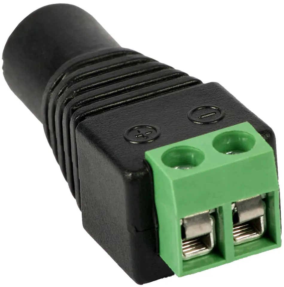 Umożliwia przedłużenie kabla zasilacza biegnącego do kamery, bez konieczności obcinania wtyczki i lutowania przewodów. Wyposażone jest w wygodne złącze śrubowe, które umożliwia proste podłączenie kabla zasilającego (skrętka, przewód koncentryczny z żyłą boczną).