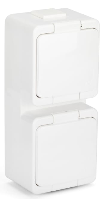 Oferowane podwójne gniazdo elektryczne z klapką białą o stopniu ochrony przed wilgocią i kurzem IP-44 idealnie sprawdzi się się do montażu w obiektach przemysłowych oraz gospodarstwach domowych. Klasyczny kształt i niewielkie gabaryty stanowią o uniwersalności gniazda.
